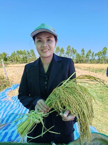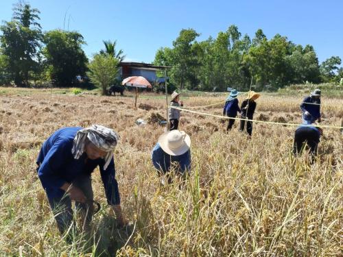 นางอัจฉราพร ผาสุกล้ำ พัฒนาการอำเภอคำตากล้า พร้อมด้วยพัฒนากร ร่วมกับ ผู้ใหญ่สิน อินทรสิทธิ์ ประธานเครือข่ายโคกหนองนา จังหวัดสกลนคร ผู้ใหญ่บ้านทุ่งดู่ หมู่ที่ 6 ต.คำตากล้า อ.คำตากล้า จ.สกลนคร เจ้าของแปลงศูนย์เรียนรู้การพัฒนาคุณภาพชีวิตตามหลักทฤษฎีใหม่ประยุกต์สู่ โคก หนอง นา ตำบลคำตากล้า และภาคีเครือข่ายฯ เกษตรอำเภอคำตากล้า, สมาชิกเครือข่าย โคกหนองนา อำเภอคำตากล้า, ผู้นำ อช. อำเภอคำตากล้า, ผู้นำชุมชน ดำเนินกิจกรรม เกี่ยวข้าวเอามื้อสามัคคี พื้นที่ต้นแบบการพัฒนาคุณภาพชีวิตตามหลักทฤษฎีใหม่ประยุกต์สู่ “โคก หนอง นา โมเดล” ผู้ใหญ่นายสิน อินทรสิทธิ์ ม.๖ ต.คำตากล้า อ.คำตากล้า จ.สกลนคร โดยมีผู้เข้าร่วมกิจกรรมจำนวน 30 คน