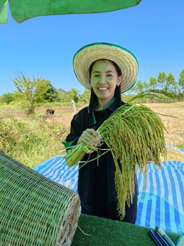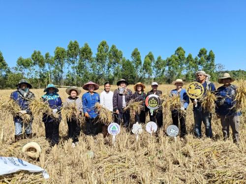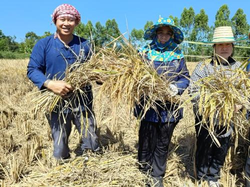 พช.คำตากล้า จ.สกลนคร : นำทีมเครือข่าย โคก หนอง นา อำเภอคำตากล้า และผู้นำ อช. ร่วมกับภาคีเครือข่าย เกี่ยวข้าวเอามื้อสามัคคี