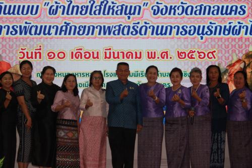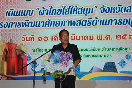 นายวีรรัตน์ ธีรมิตร รองผู้ว่าราชการจังหวัดสกลนคร เป็นประธานพิธีเปิดโครงการพัฒนาศักยภาพสตรี ด้านการอนุรักษ์ผ้าไทย และอาหารพื้นถิ่น โดยมีนางอำนวย ยุทธคราม ประธานคณะกรรมการพัฒนาสตรีจังหวัดสกลนคร กล่าวรายงาน